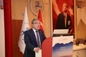 Kongrenin ikinci gününde katılımcılara hitap eden DEÜ Rektörü Prof. Dr. Bayram Yılmaz, üniversitenin bilimsel ve akademik başarılarını vurgulayarak, Dokuz Eylül Üniversitesinin son yıllarda hem ulusal hem de uluslararası sıralamalarda çok önemli aşamalar kaydettiğini belirterek, “Biz araştırma odaklı bir üniversiteyiz. Sadece orta büyüklükte bir üniversite değiliz; çok güçlü bir mühendislik altyapımız var. Öğrenci sayımız toplamda yaklaşık 60 bin civarında. Fakülte üye sayımız ise üniversitenin tamamında 1800’ün üzerinde. Üniversitemiz yaklaşık 43 yıl önce kuruldu. 1988 yılında mühendislik fakültesiyle başladık. Bazı fakültelerimiz ise üniversitemizden bile daha eski; yani yaklaşık 70 yıllık bir geçmişe sahip. Bunun da güçlü bir eğitim ve araştırma kültürüne işaret ettiğini vurgulamak isterim,” dedi.