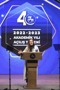 Türkiye’nin köklü devlet kurumlarından biri olan Dokuz Eylül Üniversitesi (DEÜ) 2022-2023 Akademik Yılı Açılış Töreni, DEÜ Rektörü Prof. Dr. Nükhet Hotar tarafından Cumhuriyet Meydanı’ndaki Atatürk Anıtı’na çelenk sunulmasının ardından İçişleri Bakanı Süleyman Soylu’nun katılımıyla Sabancı Kültür Sarayı’nda gerçekleşti. İzmir Valisi Yavuz Selim Köşger, İzmir İl Emniyet Müdürü Mehmet Şahne, İzmir İl Jandarma Komutanı Tuğgeneral Osman Kılıç, AK Parti İzmir İl Başkanı Kerem Ali Sürekli, MHP İzmir İl Başkanı Veysel Şahin, Dışişleri Bakanlığı İzmir Temsilcisi Büyükelçi Gökçen Kaya, kamu kurum ve kuruluş temsilcileri, siyasi parti temsilcileri, üniversite rektörleri, öğrenciler ve DEÜ mensuplarının katıldığı tören, saygı duruşu ve istiklal marşının okunmasının ardından DEÜ Devlet Konservatuvarı’nın dinletisi ve DEÜ tanıtım filmi gösterimi ile başladı.