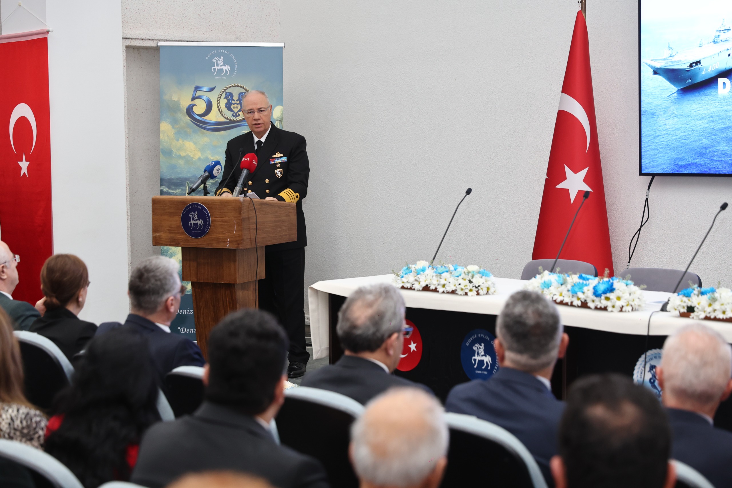 Dokuz Eylül Üniversitesi Deniz Bilimleri ve Teknolojisi Enstitüsü, deniz bilimlerine yön veren 50 yıllık akademik birikimini; askerî, diplomatik ve akademik üst düzey katılımın sağlandığı özel bir programla kutladı.