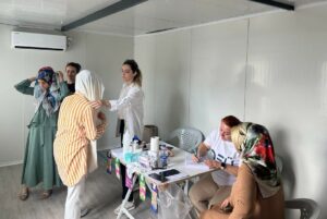 DEÜ Rektörü Prof. Dr. Nükhet Hotar’ın talimatıyla deprem bölgesine giderek deri hastalıkları, bulaşıcı hastalıkların önlenmesi, deri kanserleri ve güneşten korunma ile ilgili eğitim verdiklerini ve çeşitli sağlık tarama testleri gerçekleştirdiklerini aktaran DEÜ Kozmetoloji Uygulama ve Araştırma Merkezi Öğretim Üyesi Doç. Dr. Özlem Bağçıvan ise şunları kaydetti: “Sıcakların artmasıyla beraber cilt rahatsızlıklarında ciddi bir artış gözlemlenmeye başladı. Biz de çocukları ve bölge halkını sağlık tarama testinden geçirerek uygun tedavi yollarını planlamaya başladık. Bölgedeki afet sonrası oluşabilecek virüs, bakteri, mantar ve paraziter hastalıkların taraması ve önlenmesine ek olarak kronik deri hastalıkları bulunan bireylerin muayenesi de gerçekleştirerek tedavilerini planladık.”