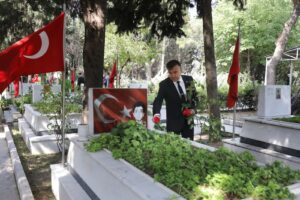 Dokuz Eylül Üniversitesi (DEÜ) Rektör Yardımcısı Prof. Dr. Hasan Murat Tanarslan, İzmir Valiliği tarafından düzenlenen 15 Temmuz Şehitlerini Anma, Demokrasi ve Milli Birlik Günü etkinlikleri kapsamında Kadifekale Hava Şehitliği’nde düzenlenen törene katıldı. Saygı duruşu ve İstiklal Marşı ile başlayan tören programında, Kur’an-ı Kerim Tilaveti ve edilen duaların ardından şehitlerin kabirleri ziyaret edildi ve protokol üyeleri tarafından karanfil bırakıldı.