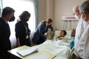 Kahramanmaraş’ta meydana gelen ve 11 ilde büyük yıkıma neden olan depremlerde enkaz altından kurtarılan yaralı vatandaşların tedavileri farklı illerde sürüyor. Dokuz Eylül Üniversitesi (DEÜ) Rektörü Prof. Dr. Nükhet Hotar, İzmir’e getirilen ve DEÜ Araştırma Uygulama Hastanesi’nde tedavi gören vatandaşları ziyaret etti. Hastanenin farklı birimlerinde tedavileri süren vatandaşlarla tek tek ilgilenen Rektör Hotar, vatandaşlara geçmiş olsun dileklerini iletti ve yakınlarını kaybedenlere başsağlığı diledi. Rektör Hotar’a ziyareti sırasında, DEÜ Araştırma Uygulama Hastanesi Başhekimi Prof. Dr. Caner Çavdar ve hastane yönetimi eşlik etti.