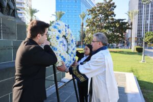Saygı duruşu ve İstiklal Marşı’nın ardından T.C. Kültür ve Turizm Bakanlığı İzmir Devlet Türk Dünyası Dans ve Müzik Topluluğu’nun dinletisiyle başlayan programda, DEÜ Rektörü Prof. Dr. Bayram Yılmaz, açılış konuşmasında hem Gazze’de yaşanan insani dramı gündeme taşıdı hem de üniversitenin son bir yıldaki başarılarını paylaştı.