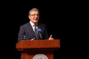 DEÜ’nün toplamda 18 fakülteye ev sahipliği yaptığını belirten Rektör Yılmaz, “Bu fakültelerimizin her biri ayrı ayrı bizim göz bebeğimiz. Biz kent geneline yayılan büyük ve köklü bir aileyiz. Fakültelerimizin her biri kendi ihtisas alanlarında çok güzel çalışmalara imza atıyor. Aynı zamanda toplumsal katkı misyonumuzu da göz önünde bulunduran kurumumuz, fakültelerimiz ve diğer birimlerimiz ile de hem öğrencilerimiz hem de vatandaşlarımızın ihtiyaçlarına cevap veren projeler geliştirerek, başarılarına her geçen gün bir yenisini daha ekliyor. Geçtiğimiz günlerde, dünyanın en saygın yükseköğretim kurumlarından biri olan Oxford Üniversitesi ile sağlık alanında yaptığımız iş birliği anlaşması gibi uluslararası ortaklıklar da Üniversitemizin uluslararası bilim arenasında saygınlığını perçinliyor. İşte biz bu yüzden; eğitimden sağlığa, spordan sanata kadar sergilediğimiz her türlü başarıda Dokuz Eylüllü olmaktan dolayı büyük bir gurur duyuyoruz. Dokuz Eylüllü olmak gerçek bir ayrıcalıktır” şeklinde konuştu.