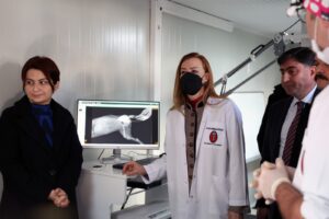 DEÜ Veteriner Fakültesi’ne kazandırılan ve geçtiğimiz günlerde yenilenen ameliyathane merkezini ziyaret eden Dokuz Eylül Üniversitesi Rektörü Prof. Dr. Nükhet Hotar, beraberindeki Kiraz Kaymakamı Onur Titiz ve Kiraz Belediye Başkanı Saliha Özçınar Kutlu ile birimdeki çalışmaları yakından inceledi. DEÜ’lü hekimlerden tedavisi süren sokak hayvanları hakkında bilgiler alan Rektör Hotar, “İzmir’de ilk ve tek olma özelliği taşıyan Veteriner Fakültemize kazandırdığımız Klinik Araştırma ve Uygulama Ünitemiz bünyesindeki ameliyathane merkezimizde, yaralı sokak hayvanlarına yönelik tedavi ve cerrahi müdahaleler hekimlerimizin şefkatli elleriyle gerçekleştiriliyor. Sokaklarda birçok tehlike ile karşılaşılmaktadır. Dolayısıyla Kiraz Belediyesi iş birliğinde çağdaş standartlarda bir barınak çalışmamızın da yakında hizmete girmesini planlıyoruz. Bu konuda, toplum ve belediyeler olarak sorumluluk almalı; sokak hayvanlarının barınabilecekleri yerleri inşa etmeliyiz” şeklinde konuştu.