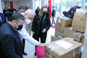 Kahramanmaraş’ta meydana gelen ve 10 kentte yıkıma neden olan depremlerin ardından bölgeye yardım elini uzatan Dokuz Eylül Üniversitesi (DEÜ), dün gönderdiği doktor, hemşire ve paramedikten oluşan grubun ardından bugün de ikinci sağlık ekibini Hatay’a yolcu etti. Üniversitenin kendi imkânları ile yürüttüğü çalışmalar kapsamında; bölgedeki yaralıların tedavisinde kullanılacak tıbbı malzeme ve ilaçları Araştırma Uygulama Hastanesi’nde bir araya getiren DEÜ Rektörlüğü, bütün bu malzemeleri hekimlerden ve hemşirelerden oluşan ikinci grup ile göndermiş oldu. Üniversite bünyesinde yürütülen destek kampanyası kapsamında farklı birimlerden toplanan malzemeler ise ihtiyaç sahiplerine ulaştırmak üzere Türk Kızılay’ının Buca Şubesi’ne teslim edildi.