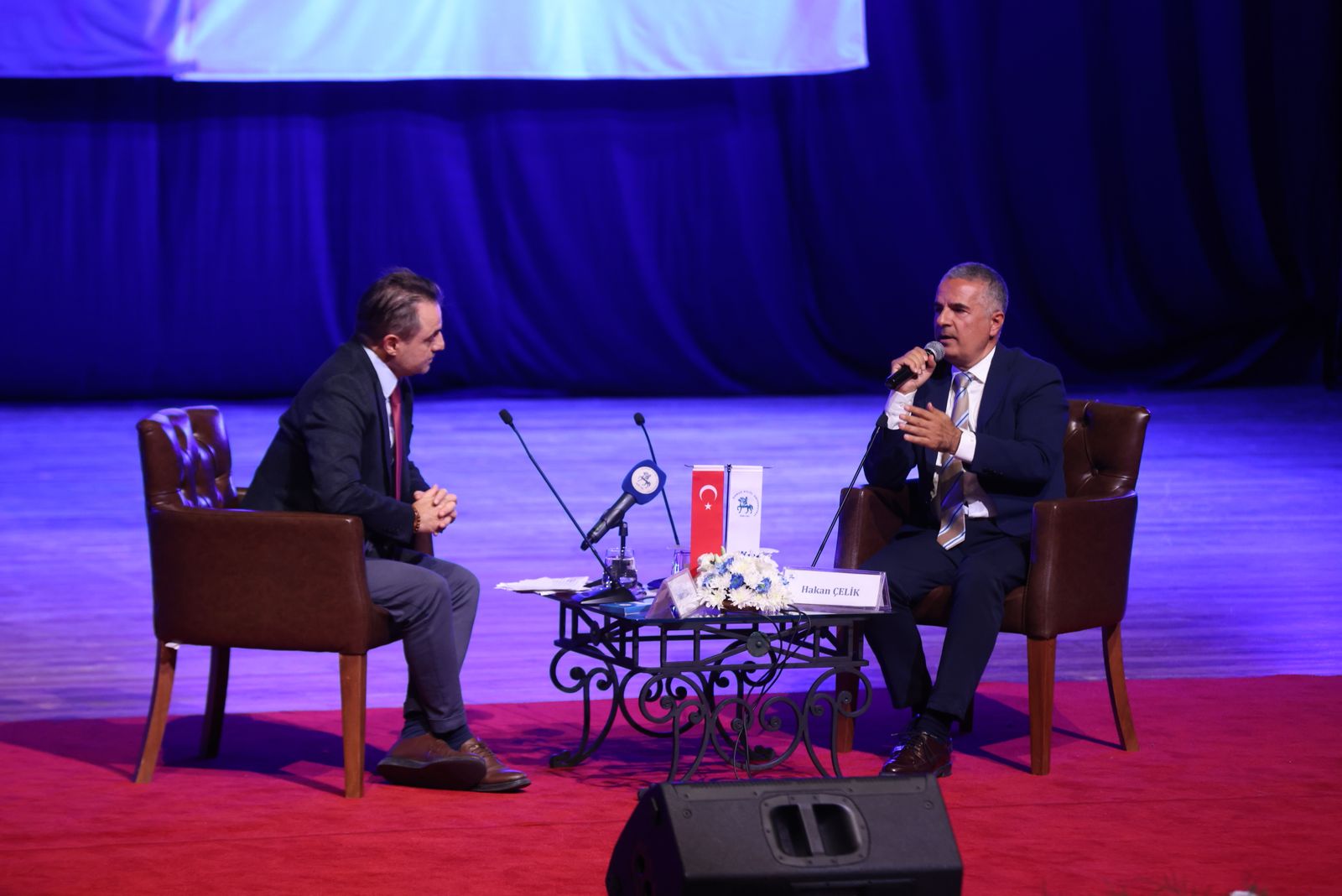 Konuşmasına DEÜ Rektörü Prof. Dr. Bayram Yılmaz’ın kısa süre önce Barselona’da Avrupa Bilimler Akademisi (Academia Europaea) üyeliğine kabul edilmesini kutlayarak başlayan Hakan Çelik, DEÜ’den de övgü dolu sözlerle bahsederek, şu ifadeleri kullandı: