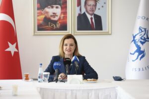 Dokuz Eylül Üniversitesinin (DEÜ) ilk kadın Rektörü Prof. Dr. Nükhet Hotar, görev süresinin dördüncü yılında gerçekleştirdikleri yatırım ve faaliyetleri basın mensuplarıyla paylaştı. Araştırma Üniversitesi olarak bir rüyayı gerçeğe dönüştürdüklerini söyleyen Rektör Hotar, pandemiye rağmen yatırımlar, projeler ve başarılarla dolu bir dönemi geride bıraktıklarını belirtti.