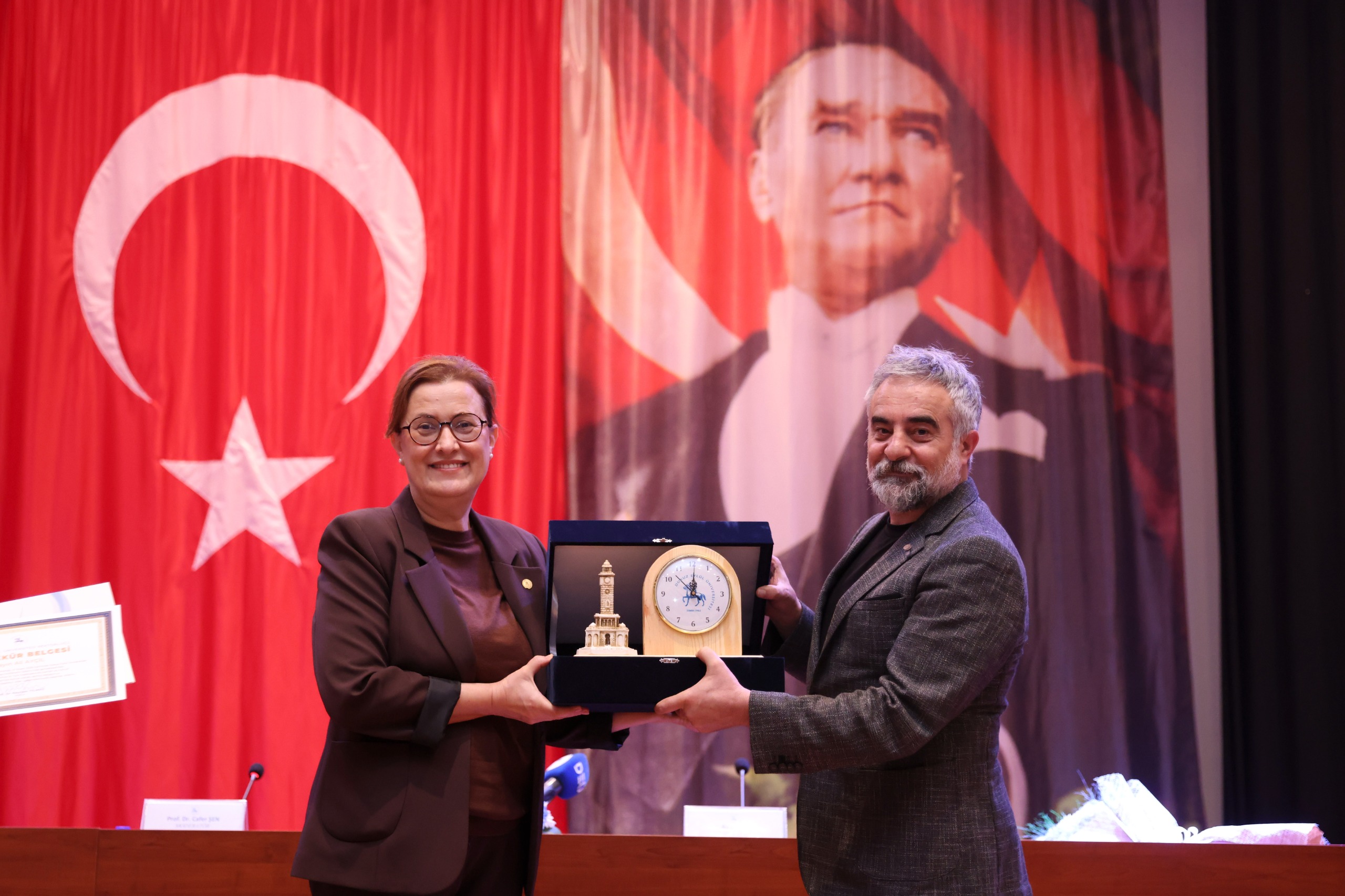 Programa; DEÜ Rektörü Prof. Dr. Bayram Yılmaz, Rektör Yardımcıları Prof. Dr. Mehmet Birhan Yılmaz ve Prof. Dr. Dilşen İnce Erdoğan, DEÜ Edebiyat Fakültesi Dekanı Prof. Dr. Kamil İşeri ile birlikte akademisyenler ve öğrenciler katıldı.